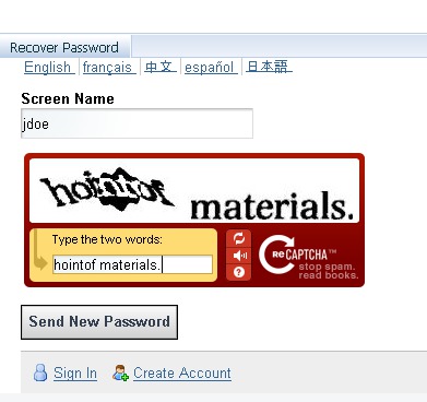 사용자 이름을 입력하고 CAPTCHA 이미지의 단어를 입력한 다음