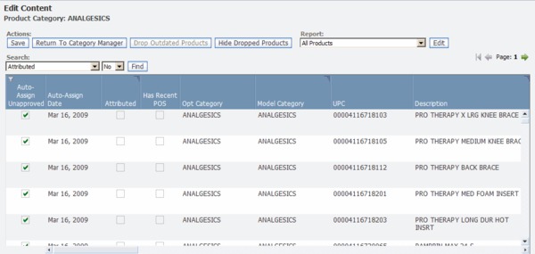 | 2.  | 승인되지 않은 자동 지정 제품 수 열에 있는 승인되지 않은 자동 지정된 제품이 있는 카테고리를 마우스 오른쪽 단추로 클릭하십시오. 제품의 수가 0보다 많으면 열이 노란색으로 강조표시됩니다. |